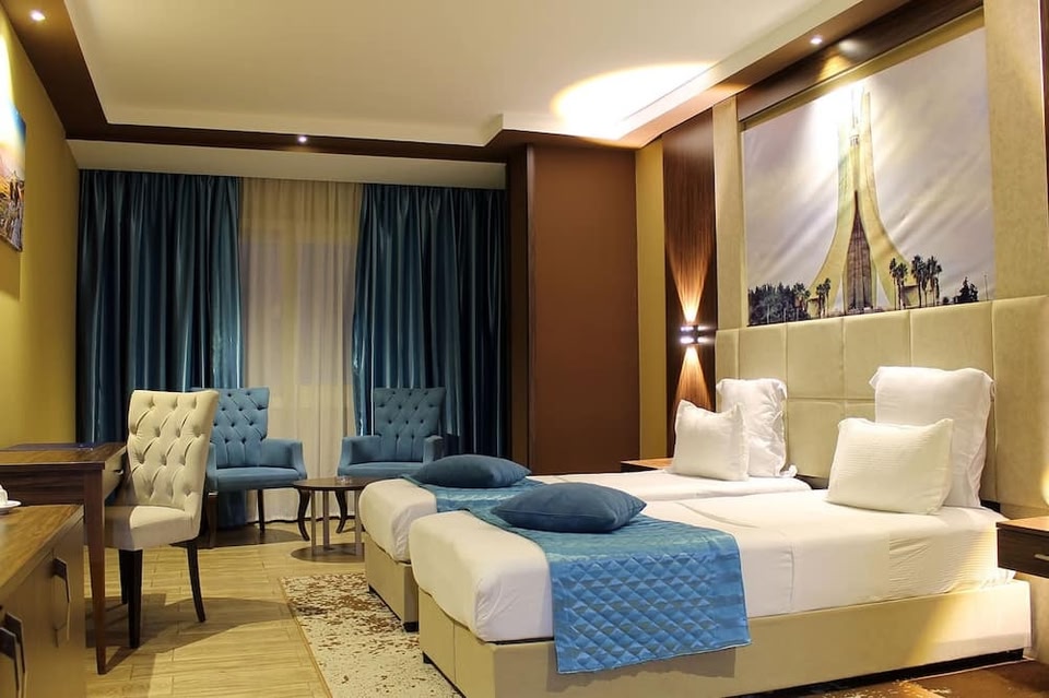 USTO, a neighborhood in Bir El Djir, is home to LB Suites Hotel. Musée National Ahmed Zabana and Museum of Modern Art of Oran are cultural highlights, and some of the area's attractions include Palais de la Culture and Oran Zoo. This hotel features an indoor pool, a restaurant, and a coffee shop/cafe. Free buffet breakfast, free WiFi in public areas, and free self parking are also provided. Additionally, a 24-hour front desk and a banquet hall are onsite. Change of towels is available on request. LB Suites Hotel offers 18 accommodations with minibars and complimentary bottled water. Beds feature premium bedding. 120-cm flat-screen televisions come with satellite channels. Bathrooms include showers, bathrobes, complimentary toiletries, and hair dryers. Guests can surf the web using the complimentary wireless Internet access (speed: 100+ Mbps (good for 1–2 people or up to 6 devices)). Business-friendly amenities include offices, desk chairs, and phones. Additionally, rooms include coffee/tea makers and blackout drapes/curtains. Change of towels and change of bedsheets can be requested. A nightly turndown service is provided and housekeeping is offered daily. Recreational amenities at the hotel include an indoor pool.