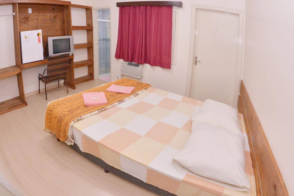 Hotel praia grande is within 50 meters from the beach recognized at a nacional level with clean waters and great for families. All the rooms have wi-fi, TV, mini fridge, towels and beddings available.