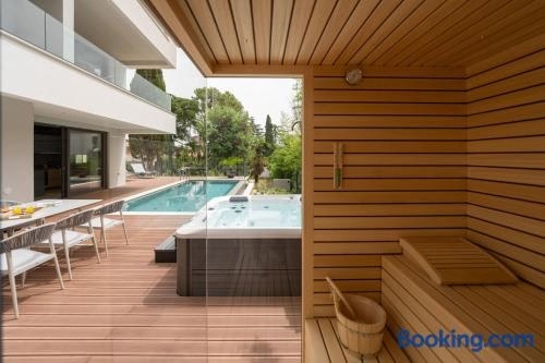 Obiekt The Q Senses - new luxury apartment with piano, pool, sauna and jacuzzi położony jest w miejscowości Rovinj i oferuje klimatyzację, balkon oraz bezpłatne Wi-Fi.
