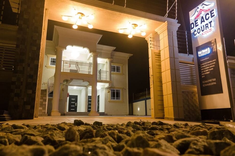 De Ace Court ligger i Oduman. Achimota Forest och Kokrobite Beach är exempel på områdets vackra natur, och bland de lokala turistattraktioner hittar du Accra Zoo and Endangered Primate Breeding Centre och House Party Karts. Har du tänkt gå på ett evenemang eller se en match när du är i stan? Kolla upp vad som är på gång på Ohene Djan-stadion eller El Wak Stadium. Lägenhetshotell i Oduman med gratis frukost och dygnet runt-öppen receptionDe Ace Court är ett lägenhetshotell där gäster har tillgång till tvättmöjligheter, dygnet runt-öppen reception och gratis frukost. Parkering ingår. Varje lägenhet har stor kyl/frys, ugn, spishäll och mikrovågsugn i köket. Gäster erbjuds dessutom bekvämligheter som gratis wi-fi och diskmaskin. De Ace Court har 4 rum. Gäster har tillgång till gratis wi-fi. Rummen på detta lägenhetshotell med 3,5 stjärnor har kök med stor kyl/frys, spishäll, mikrovågsugn och grytor/köksredskap. Städning sker dagligen.