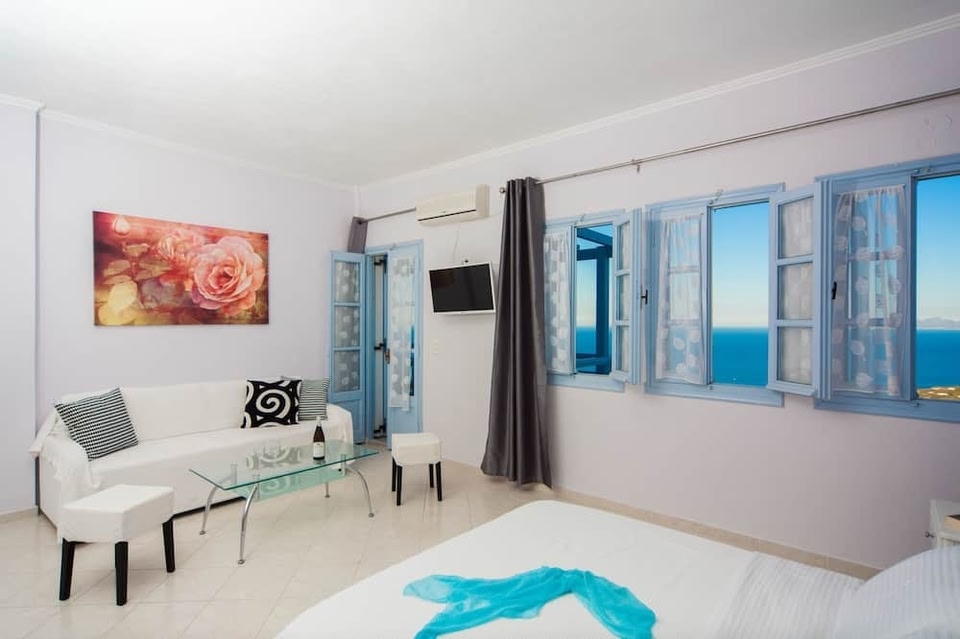 The Cycladic-style Luna Rossa Santorini is set in Imerovigli, within 5 km of Oia. It offers units with free WiFi and unobstructed views over the Aegean Sea. Free open air parking and secured parking upon request.