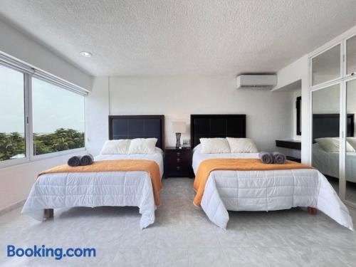 Obiekt Bonito departamento en condominio con PLAYA położony jest w miejscowości Cancún i oferuje patio, ogród oraz bezpłatne Wi-Fi. Odległość ważnych miejsc od obiektu: Plaża Playa Delfines – 1,3 km.