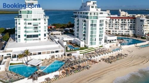 Obiekt Oceanview con acceso a la playa położony jest w miejscowości Cancún i oferuje bezpłatne Wi-Fi, klimatyzację oraz ogród. Odległość ważnych miejsc od obiektu: Plaża Playa Punta Nizuc – 400 m, Centrum handlowe La Isla Shopping Village – 8,9 km.
