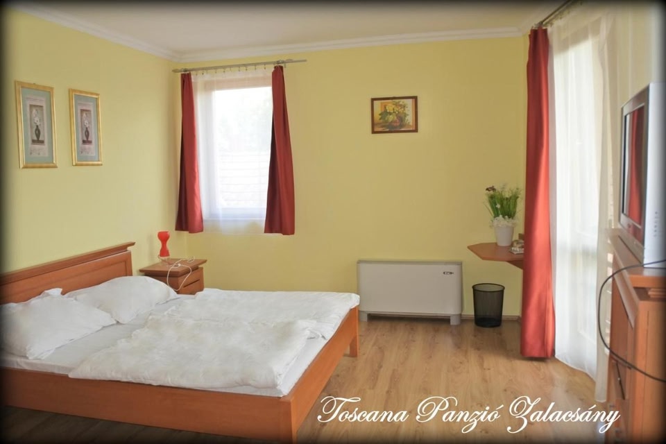 Obiekt Toscana Panzió położony jest w miejscowości Zalacsány i oferuje sezonowy odkryty basen, bezpłatne Wi-Fi, ogród oraz wspólny salon. Na miejscu serwowane jest śniadanie kontynentalne. Obiekt Toscana Panzió oferuje wannę z hydromasażem.